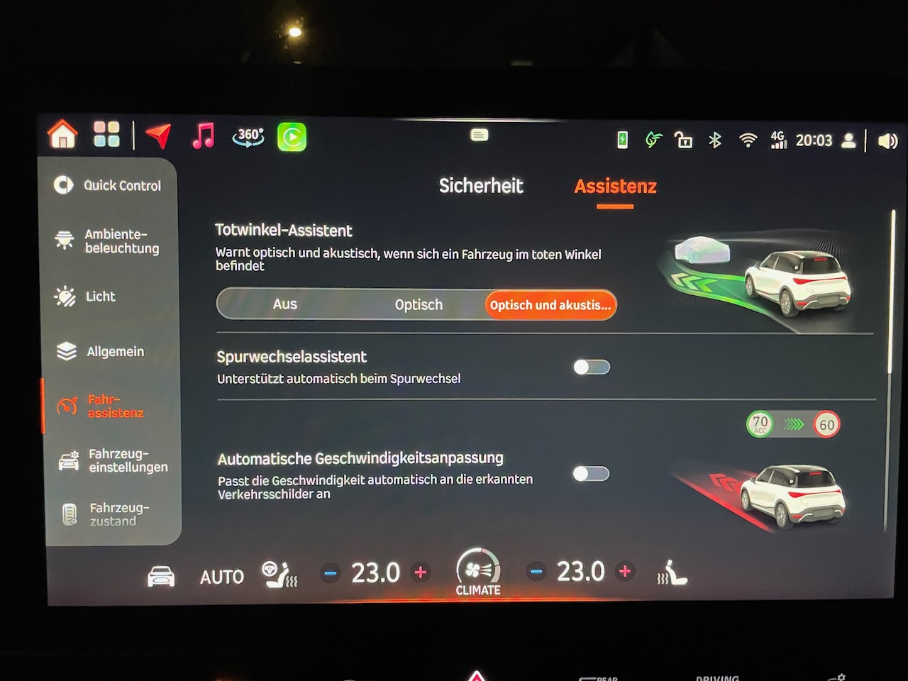 Smart OS 1.3.2 (fast) alle Menus des Infotainment-Bildschirms
